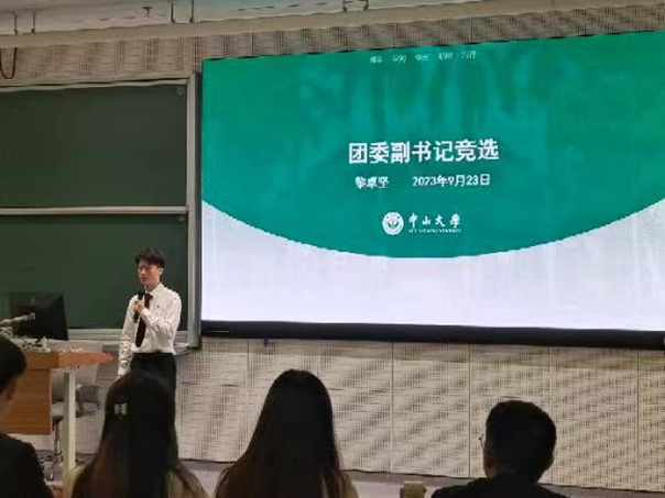 学生候选人张迎天、黎卓坚、方超凡、余嘉宜、秦华谦、吴恺云、苏秦依序进行演讲和答辩。他们结合个人学生工作经历,阐述自己的工作理念与未来规划,表达了为同学服务、建设更好团学组织的信心与决心。