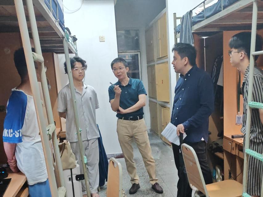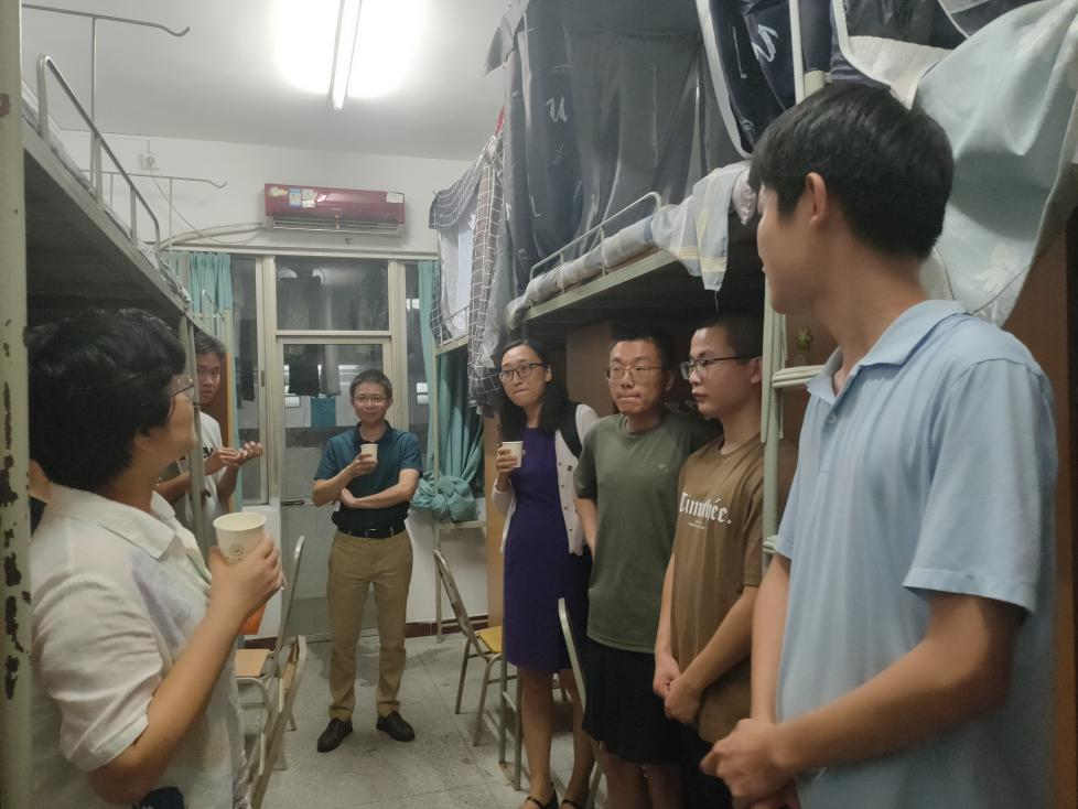 学院格外关注新同学的住宿和饮食适应情况。走访慰问过程中,吴晓枫书记对同学们的到来表示热烈欢迎和亲切问候,详细了解了新生们的专业、生源地等情况,仔细询问同学们在进校后遇到的问题,尤其是住宿条件和食堂饮食的适应情况,多次叮嘱班主任要细致耐心解决学生的问题。六位本科生新生班主任也到各个寝室与班级学生见面,与同学们展开温馨交流。