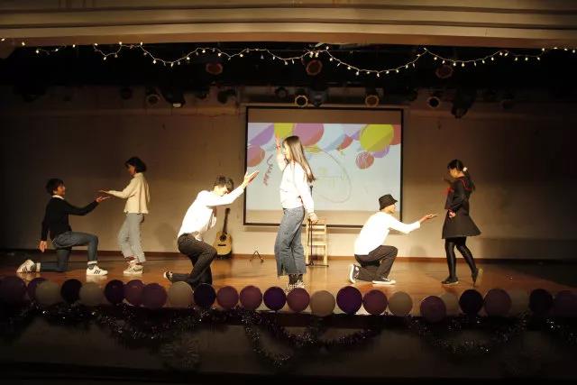 晚会在舞曲串烧《鸡同鸭讲》中拉开了帷幕,紧接着,歌曲《A Sky Full of Stars》、《告白气球》以及游戏“你划我猜”使现场不断升温,《一场说走就走的秀》的女装大佬出场时,同学们喝彩不断,尖叫连连,更是将气氛推向了高潮。最后,在《Vivi La Vida》的强烈节奏中,在温暖的灯光下,同学们纷纷站起来,和着节奏舞动着,堪比小型演唱会。