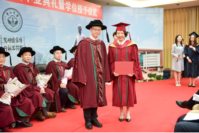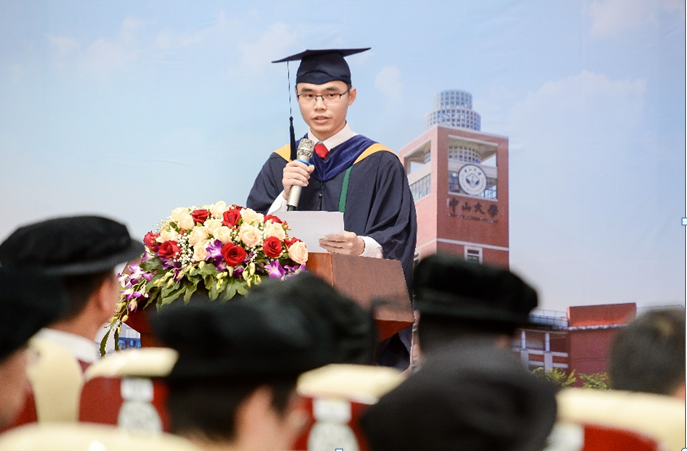 伴随着国歌和热烈的掌声,谭晓军副院长宣读孙中山先生的毕业训词,全体研究生毕业生认真聆听,齐声回应“谨遵教诲”。