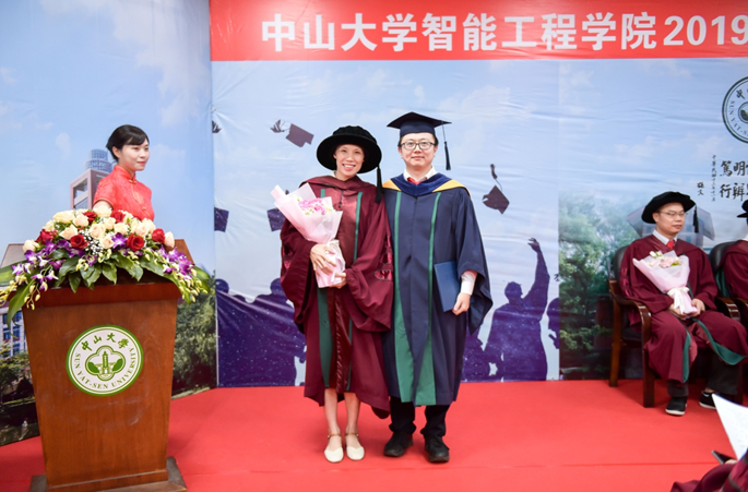 在《山高水长》悠扬的乐曲声中,2019年学位授予仪式正式开始,毕业生逐一走向主礼台,副院长(主持工作)蔡铭教授为获得学位的毕业生拨穗并颁发学位证书。毕业生受礼完成后向导师献花,感谢导师的培养和指导。仪式庄重而温馨,观礼的师生代表和毕业生亲友都倍受感染,并为毕业生们学业有成而欣喜激动。