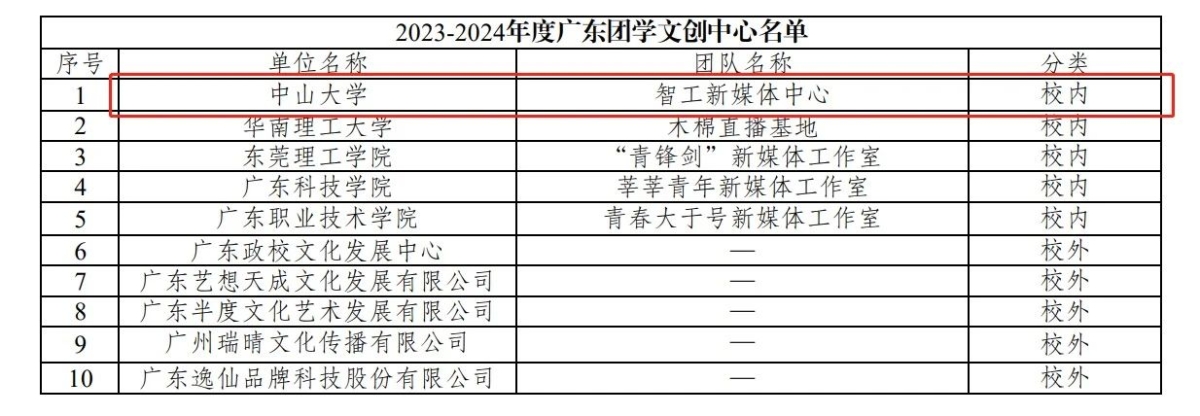 2023年7月,共青团广东省委办公室、广东省学生联合会秘书处公示2023-2024年度广东团学文创中心名单,我院新媒体中心光荣入选!