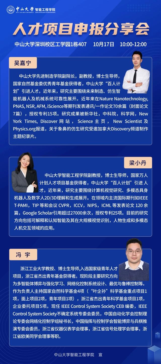 2024年10月17日上午10:00点,我院举办“人才项目申报分享会”主题学术讲座,讲座在深圳校区工学园1栋407举行。