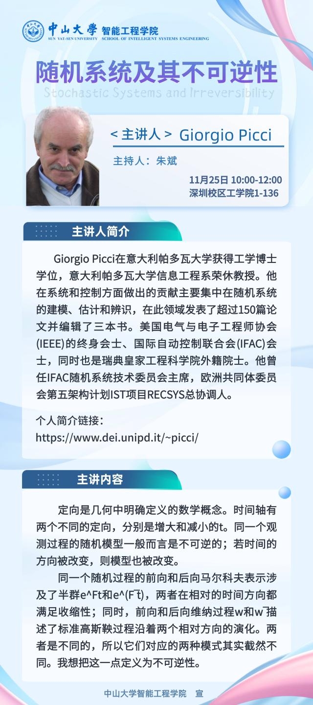 学术讲座 | Giorgio:“随机系统及其不可逆性”的学术报告讲座