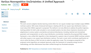 近日,在欠驱动非线性系统的自适应迭代学习控制理论研究领域,我院李雪芳副教授取得系列化创新成果,连续以第一作者身份在国际控制领域权威期刊《IEEE Transactions on Automatic Control》发表学术论文2篇,对学院控制科学与工程一级学科的建设与发展具有重要意义。